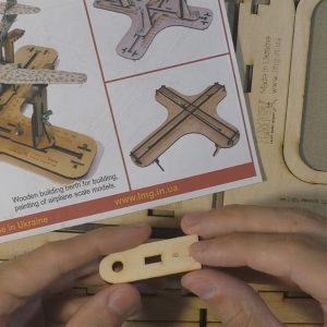 Aircraft model building stand. This versatile tool securely holds models, allowing rotation for easy assembly. Suitable for 1/72, 1/48, and 1/32 scales. Kit includes laser-cut plywood parts and instructions. Model aircraft not included.